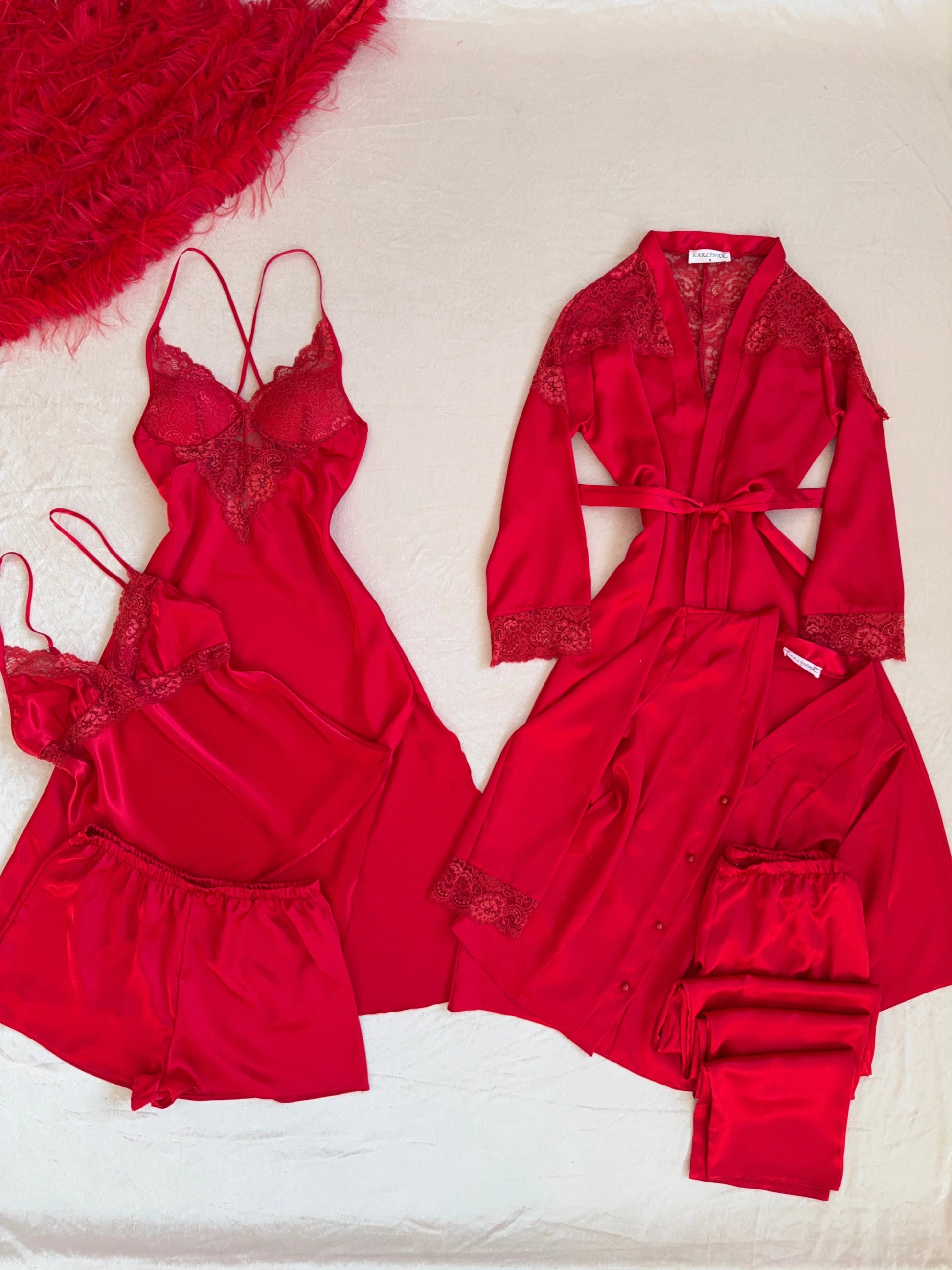 طقم "الريم" الساتان والدانتيل ٦ قطع