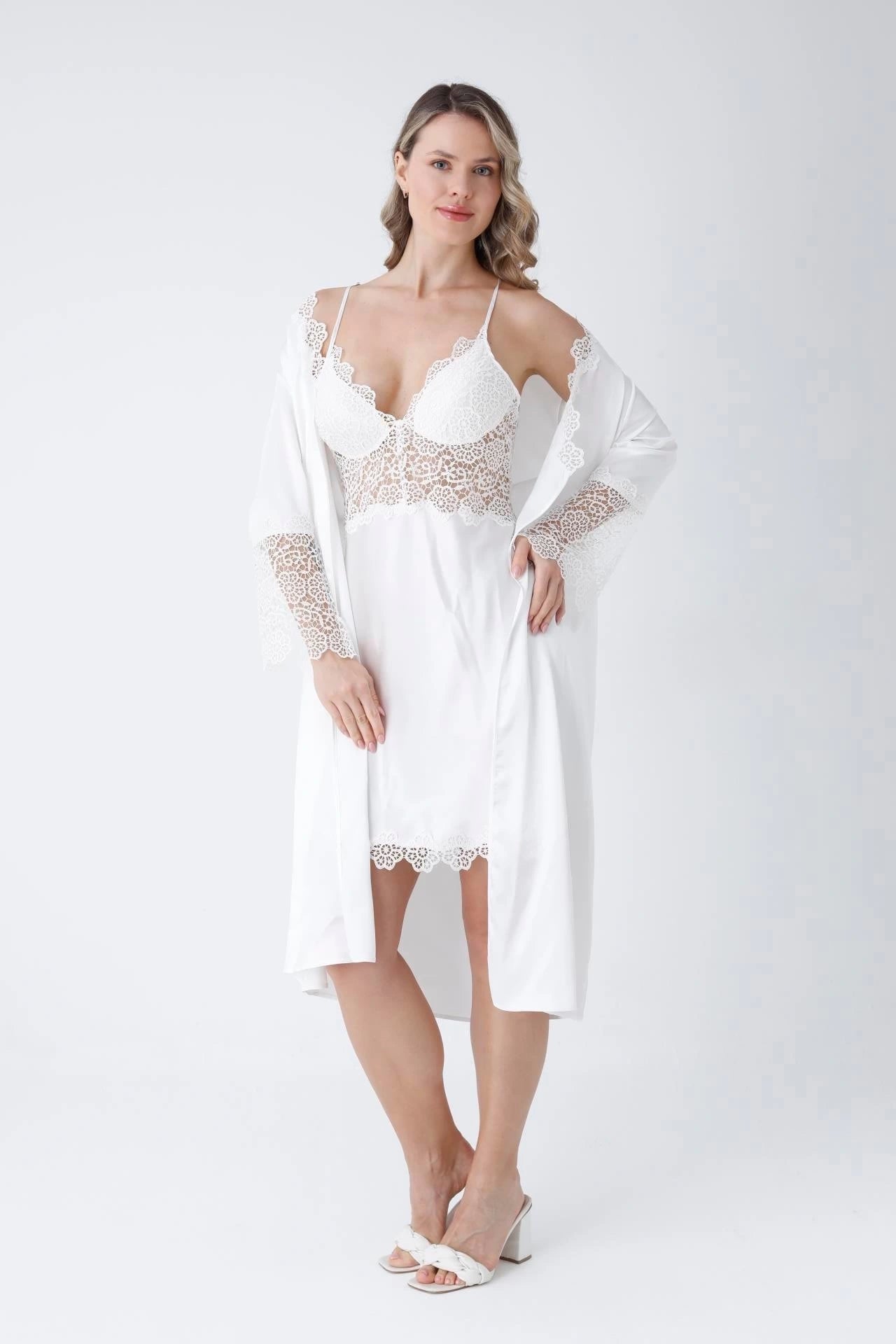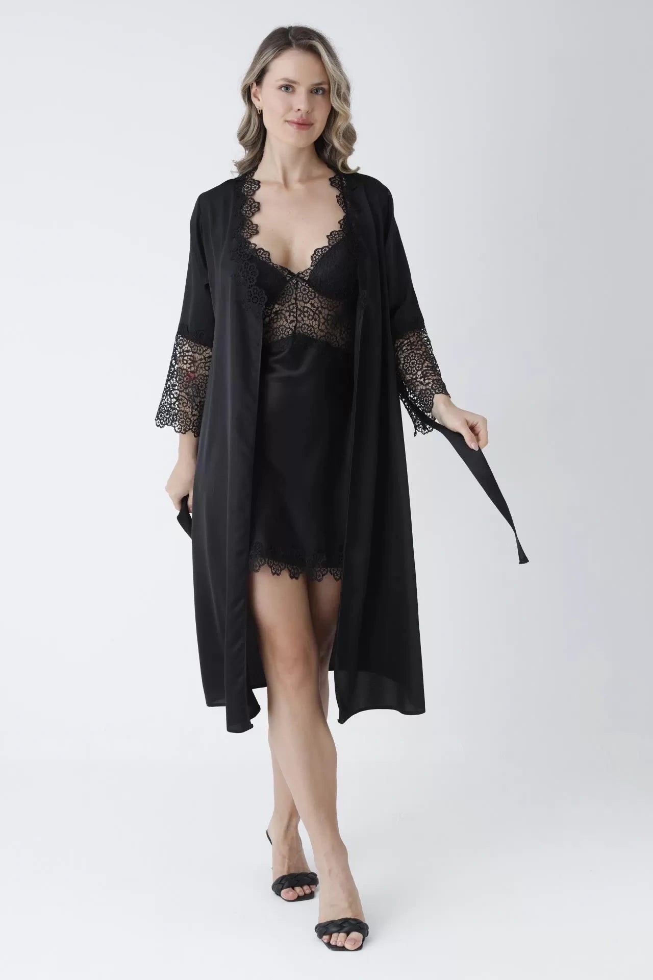 تصميم "أثير" المميز: قميص نوم قصير مريح يتناغم بجمال مع روب طويل يضفي لمسة من الأناقة والوقار.