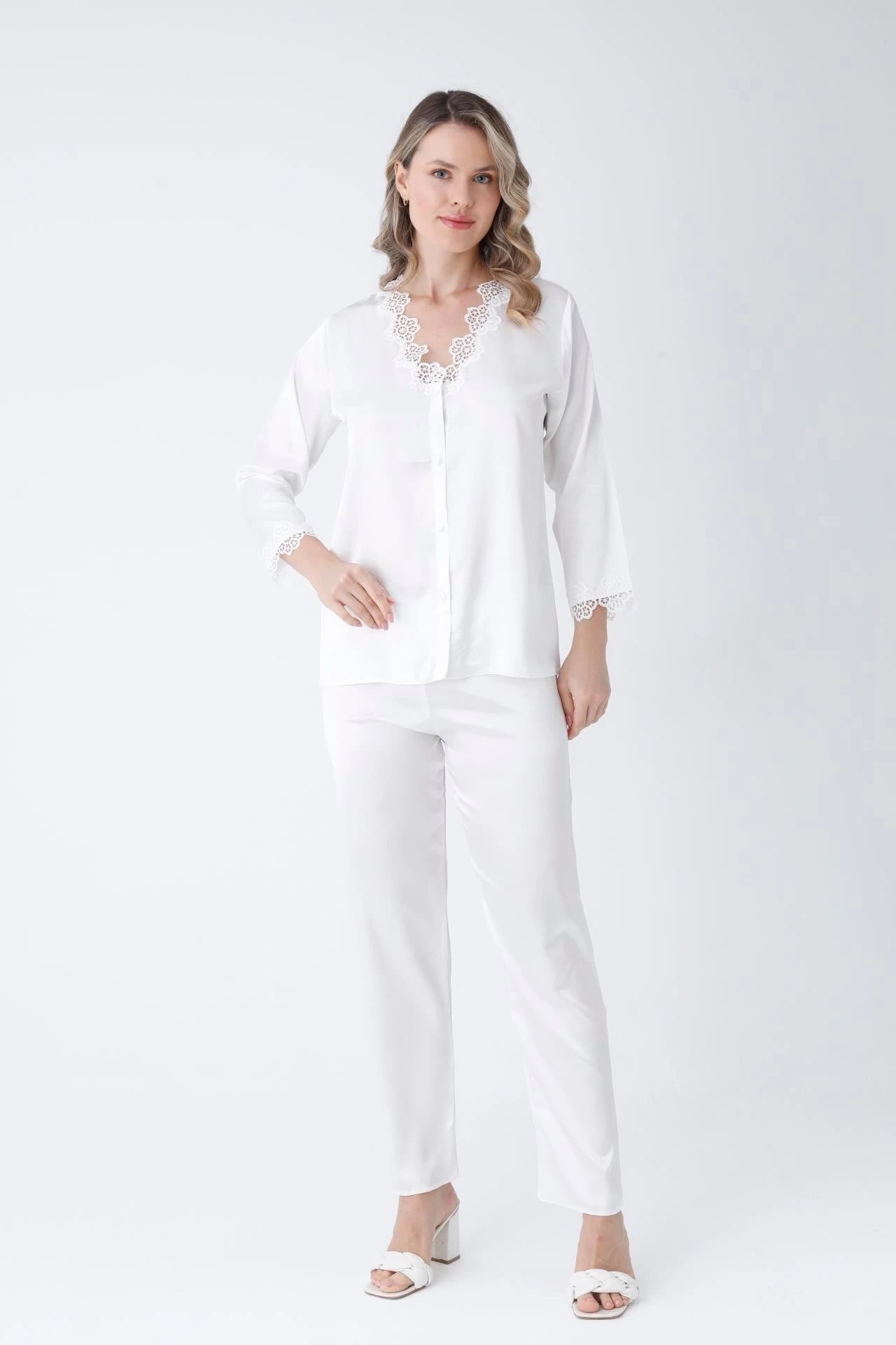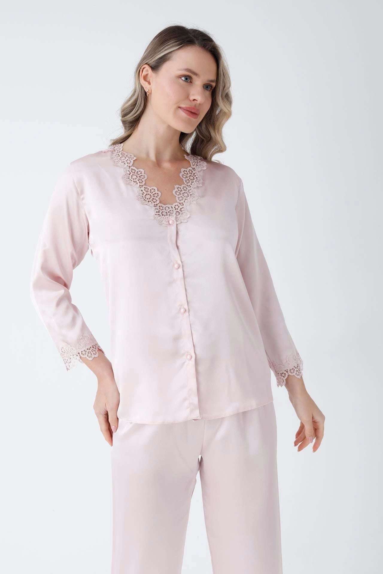 يجمع طقم "أثير" بين الرقة والفخامة، حيث يلتقي تصميم قميص النوم القصير مع الروب الطويل ليمنحكِ إطلالة ملكية بلمسة عصرية.