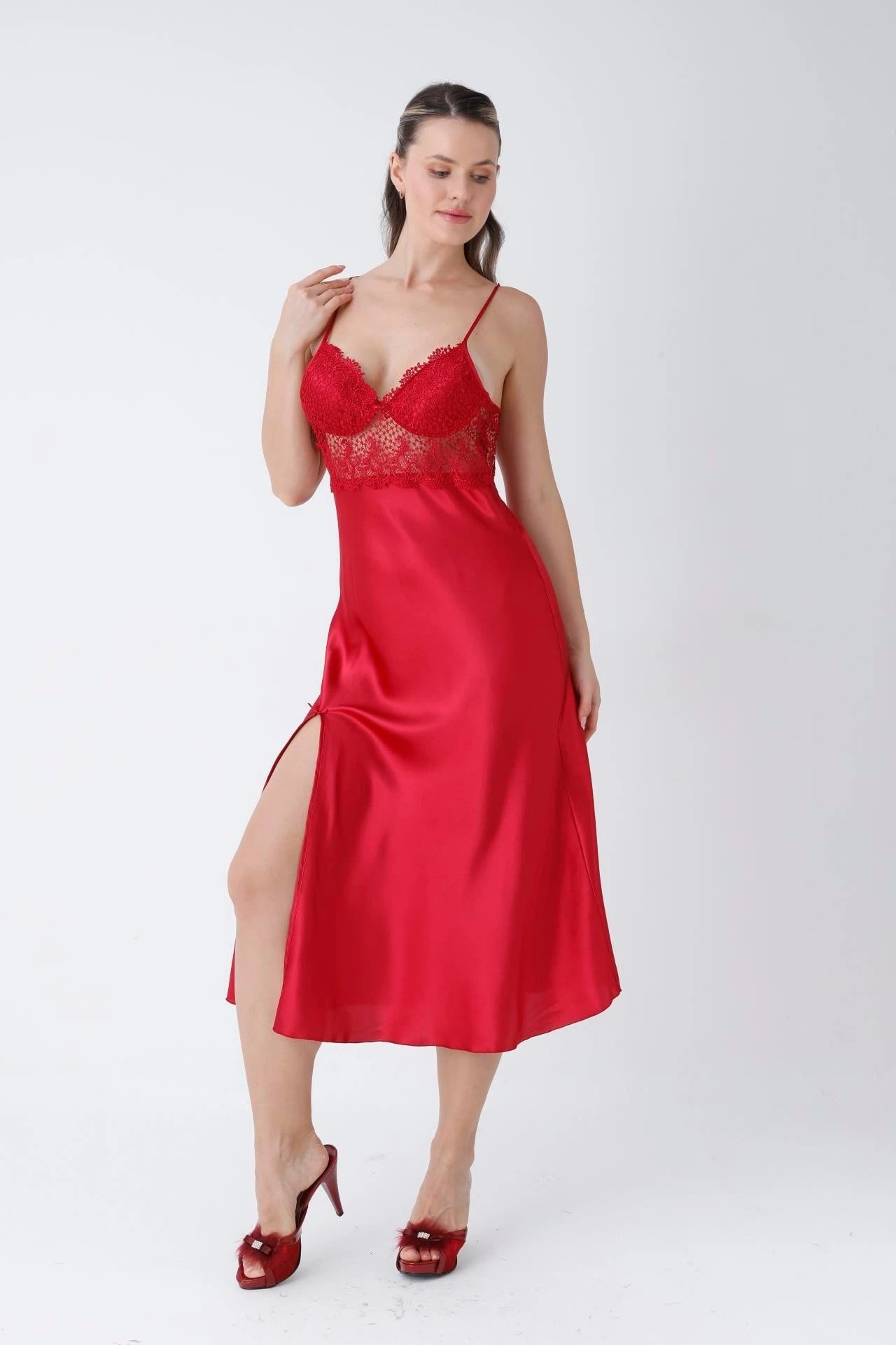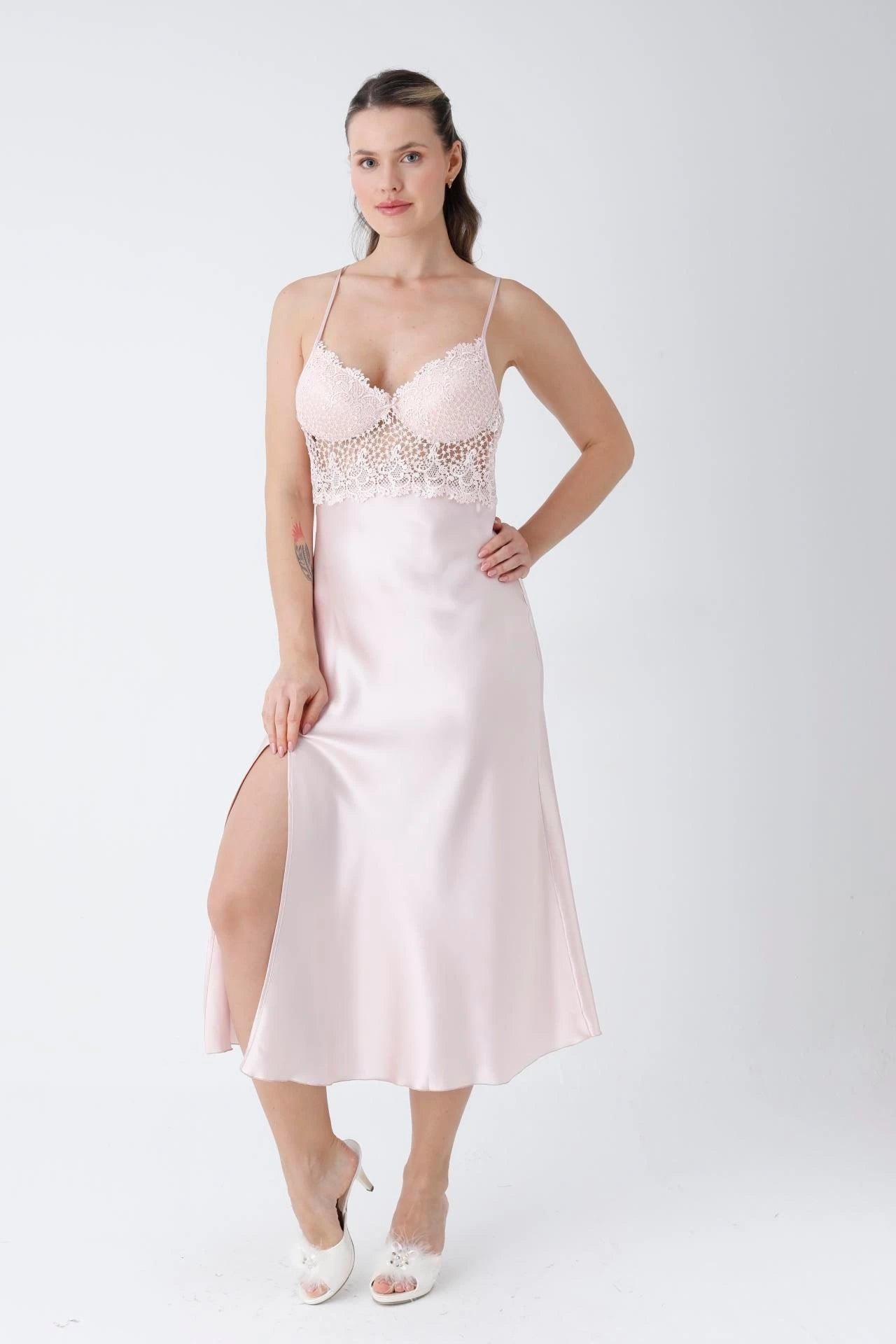 مرونة تامة: قميص النوم والبراليت مزودان بحمالات رفيعة قابلة للتعديل لضمان الملاءمة المثالية لقوامكِ.