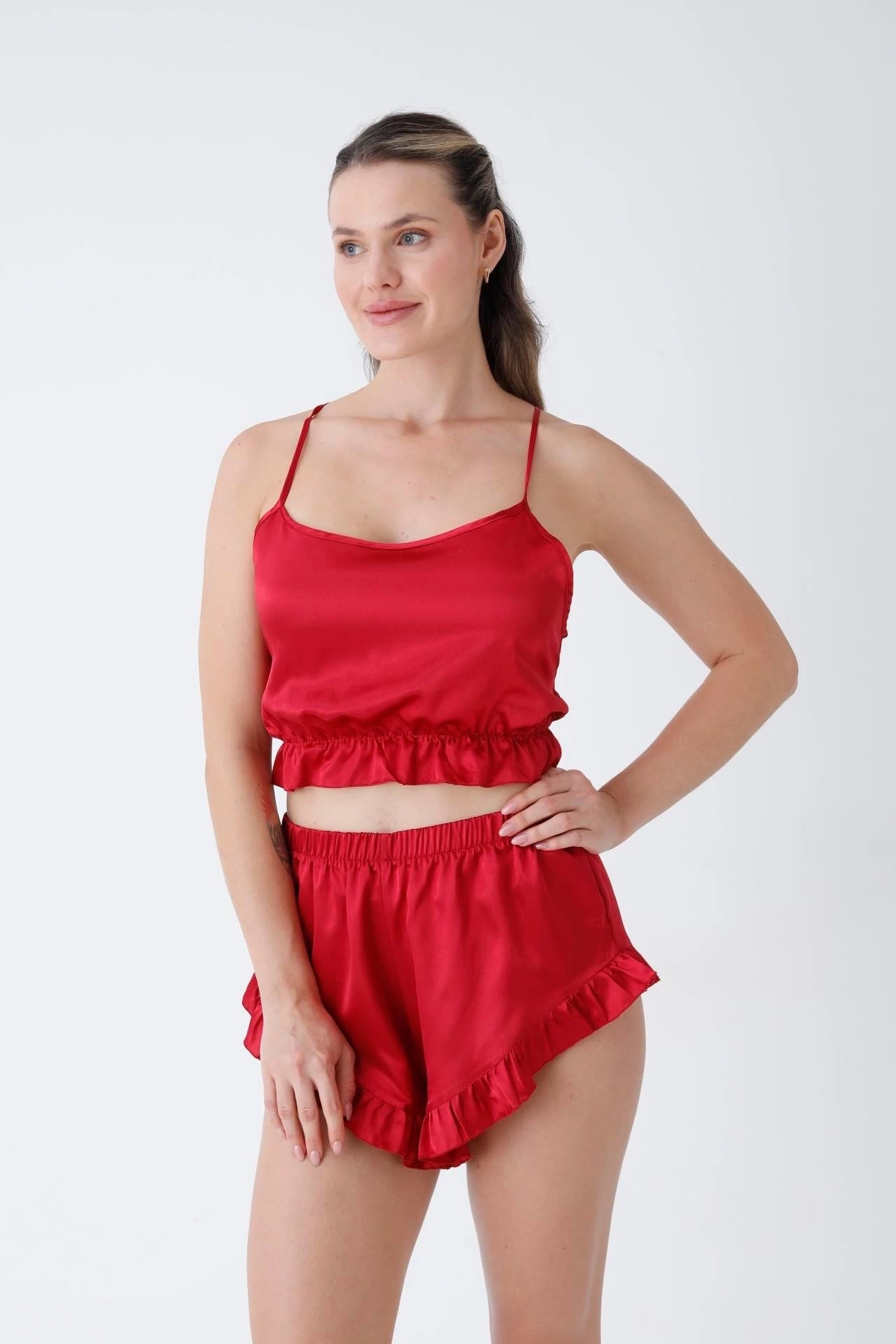 يجمع طقم "ليان" بين رقة الدانتيل وفخامة الساتان، ليمنحكِ إطلالة مفعمة بالأنوثة والجاذبية. صُمم هذا الطقم المكون من ٤ قطع بعناية فائقة ليكون قطعة فنية في خزانتكِ الخاصة.