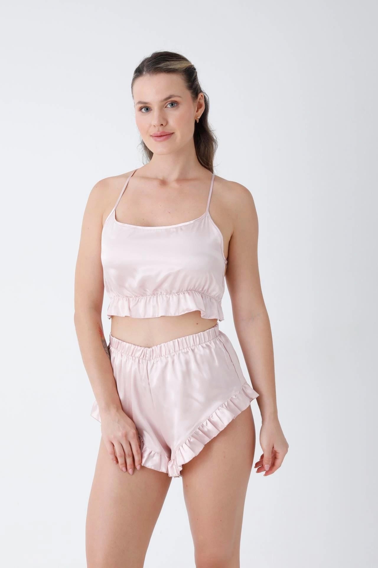 طقم "ليان" ٤ قطع ساتان بدانتيل مطرز