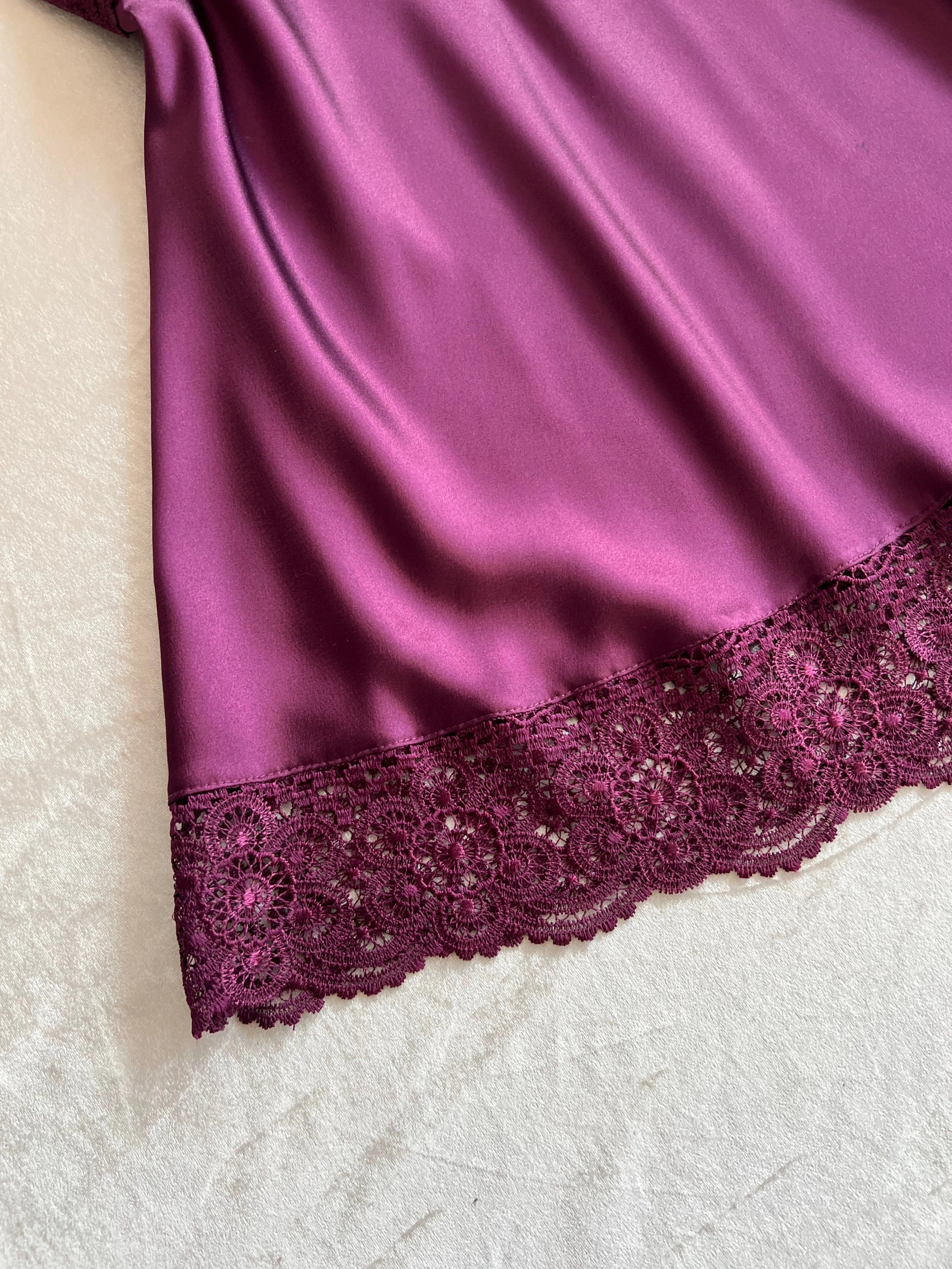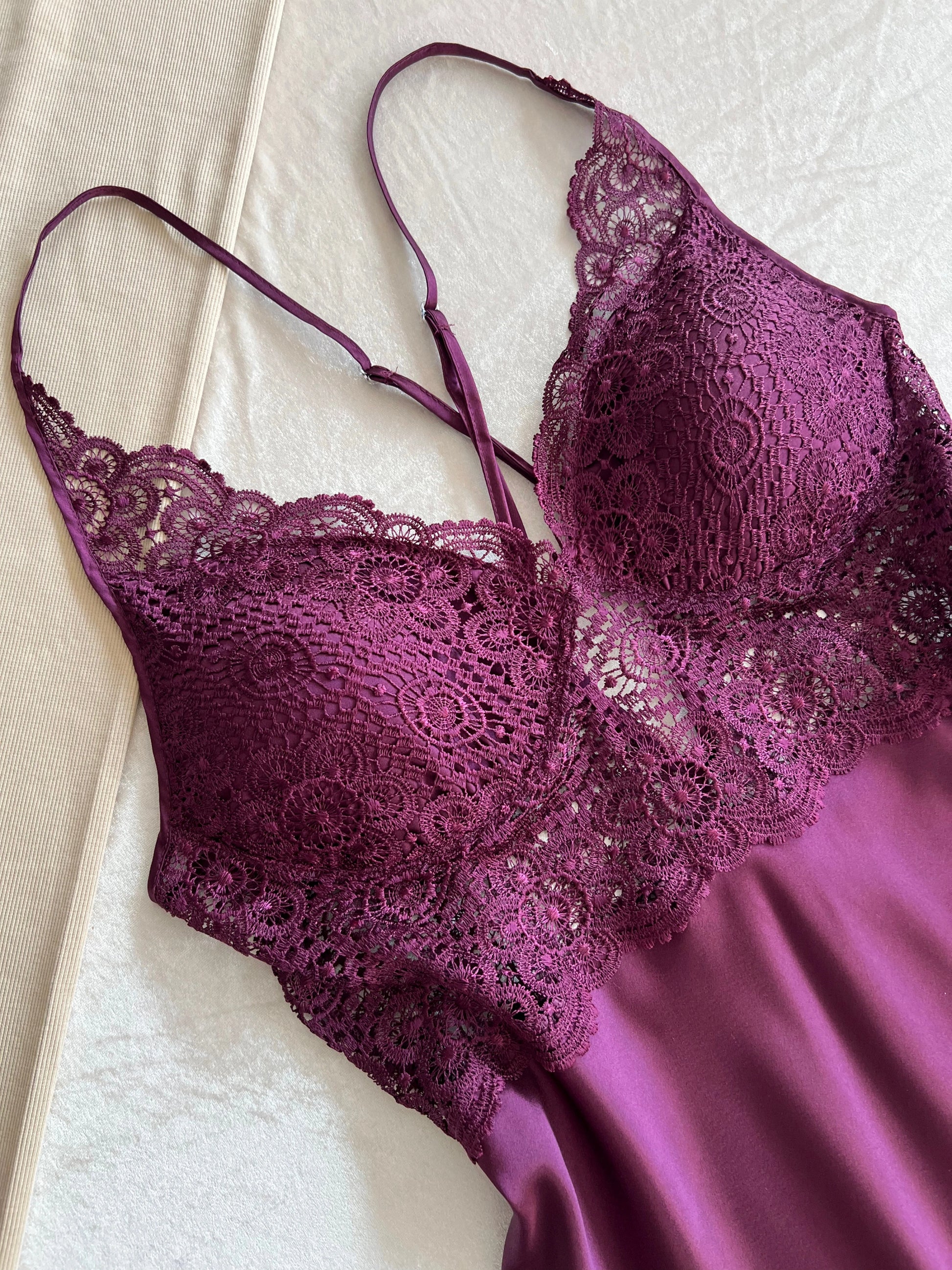 فستان نوم بنفسجي يتم تحضيره بعناية وتسليمه في صناديق كارلينكس مغلفة بورق حريري.