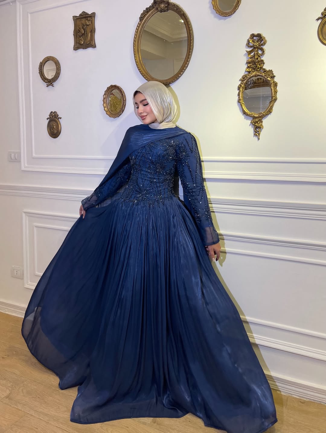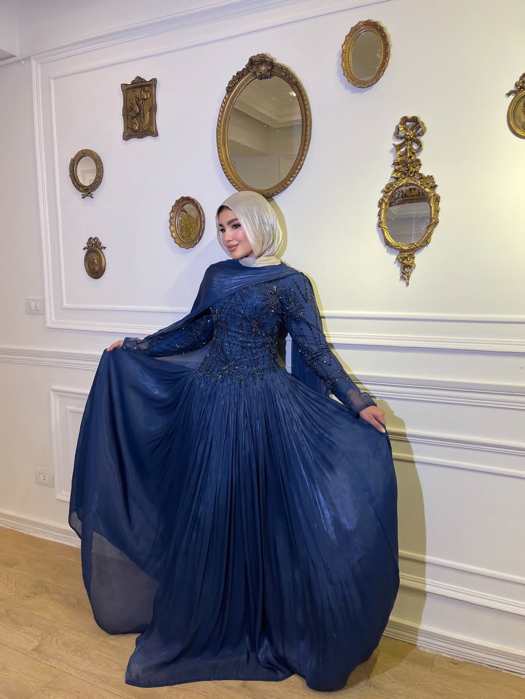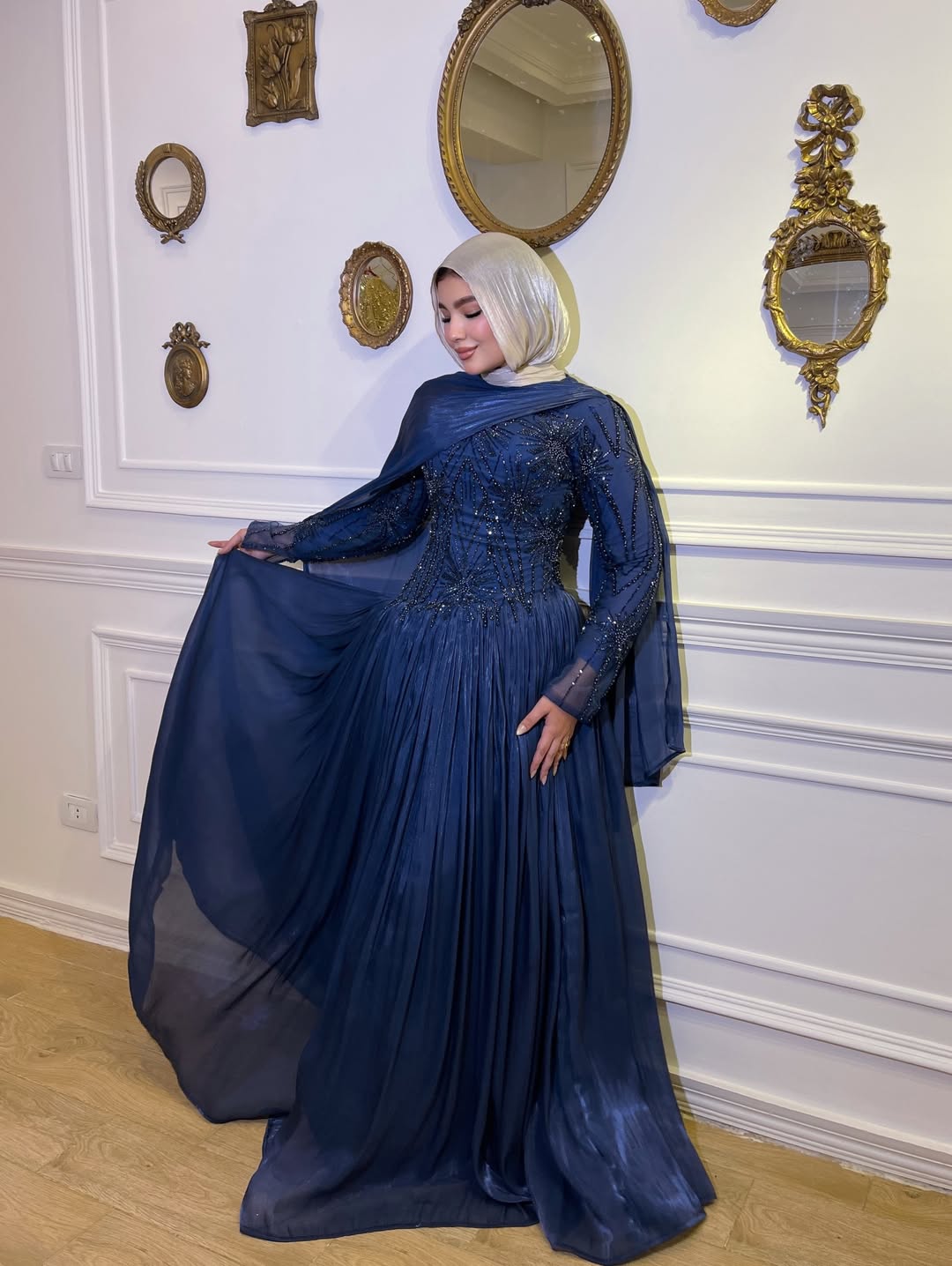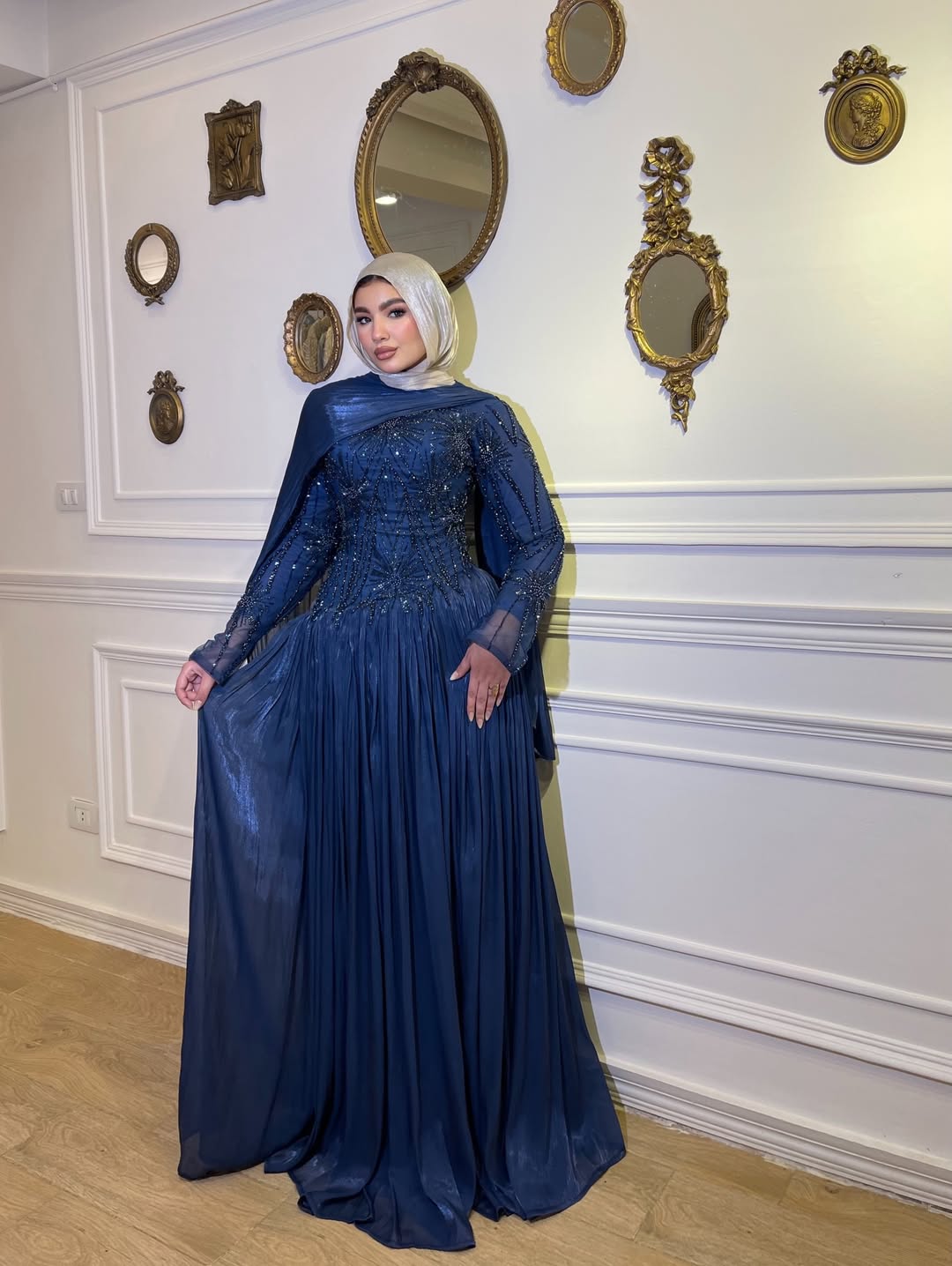 لو عندك مناسبة وتبغين طلة تخلي الكل يسأل "من وين الفستان؟"، هذا الفستان هو خيارك الأول! يجمع بين نعومة الشيفون وفخامة التطريز اليدوي اللي يزين الصدر والأكتاف بطريقة فنية.